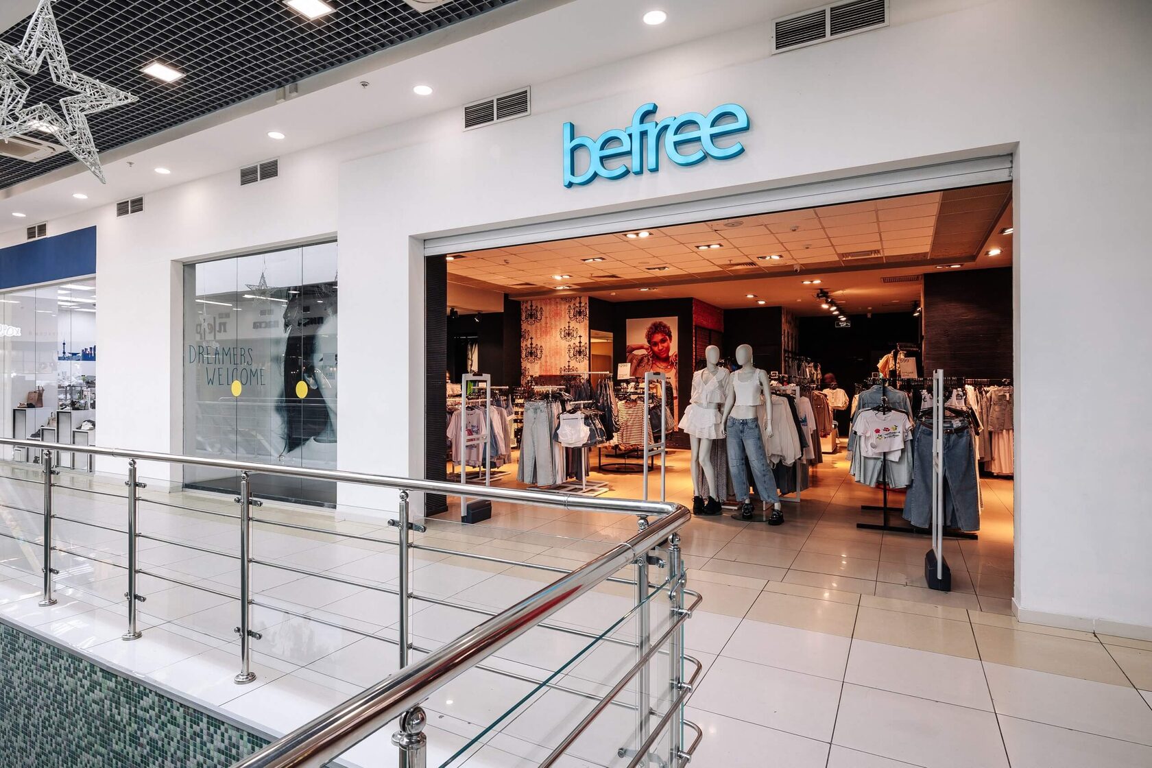 Магазины Befree — это пространства в стиле минималистичного fusion с комфортной зоной отдыха и мягким светом в примерочных. У нас есть мужской и женский отделы, обувь, одежда для дома и спорта, белье и аксессуары. Отдельное направление — коллекции Befree Co:Create, которые мы создаем вместе с художниками, дизайнерами и инфлюэнсерами.