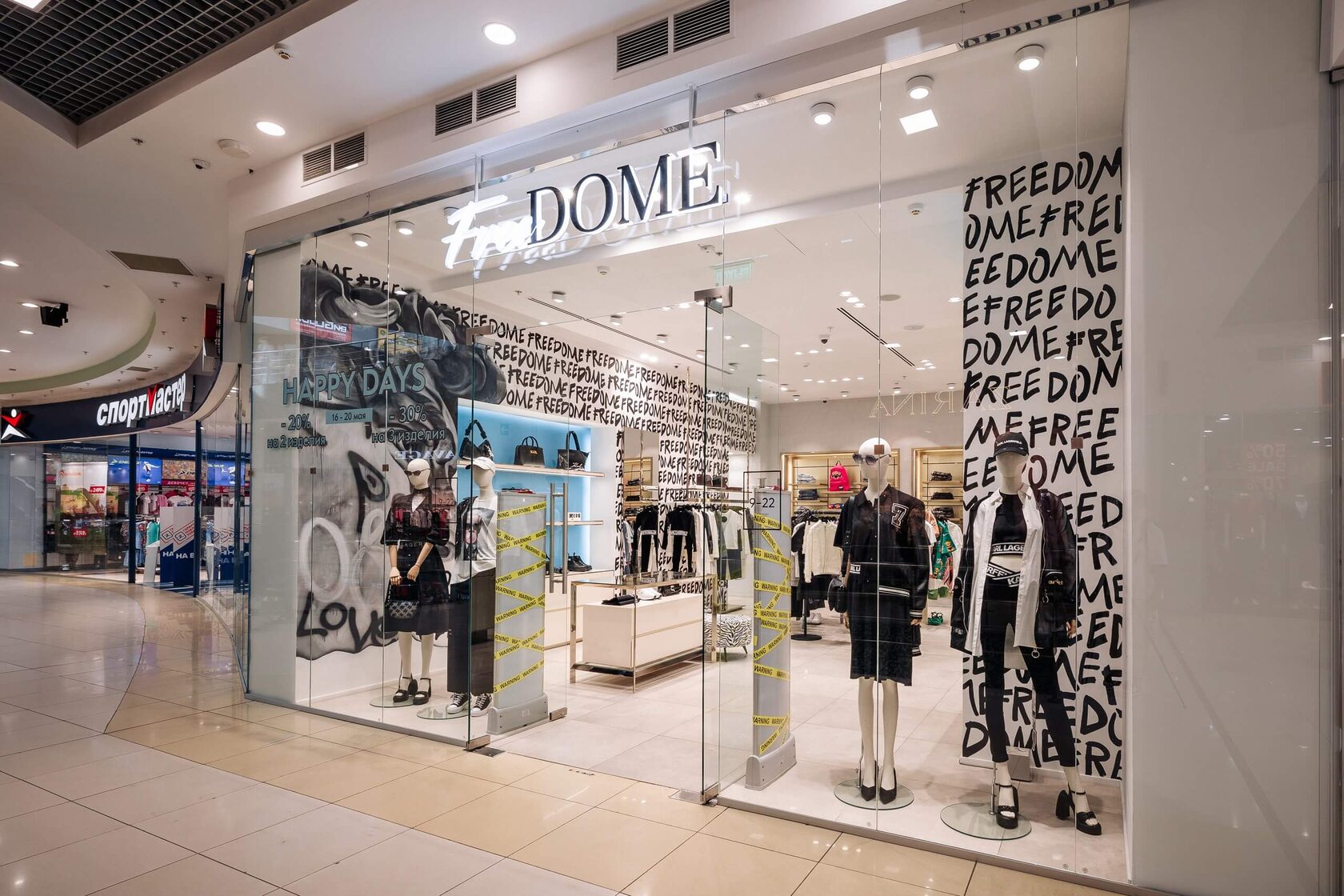 FreeDome - мультибрендовый бутик премиум-класса, отличающийся ярким дизайном и пропагандирующий свободу самовыражения. В ассортименте представлены оригинальные изделия от ведущих мировых брендов streetstyle моды, таких, как MWM, Karl Lagerfeld, Haikure, ICON, Disclaimer, Isabelle Blanche.