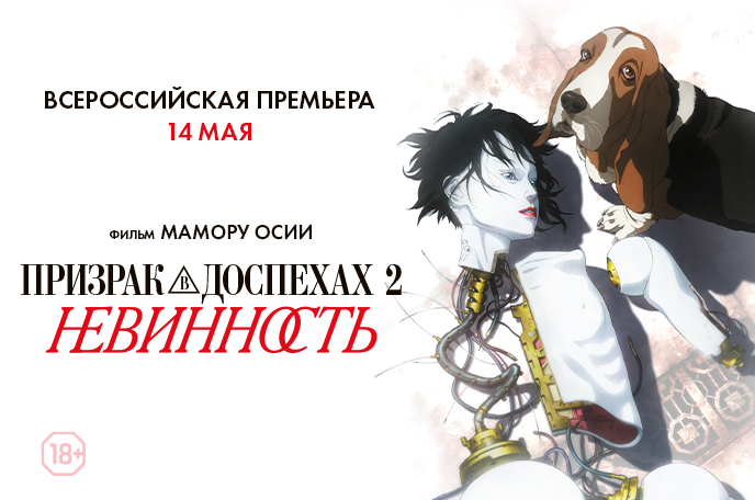 14 мая Сеть кинотеатров «Синема Парк» и «Формула Кино» приглашает на всероссийскую премьеру одного из шедевров Мамору Осии, второй части культового киберпанк-аниме «Призрак в доспехах», продолжающего историю майора Мотоко Кусанаги и её напарника Бато, расследующих кибер-преступления в Японии будущего. На премьерных показах будет продемонстрирована отреставрированная версия в дубляже «Студийной банды».
